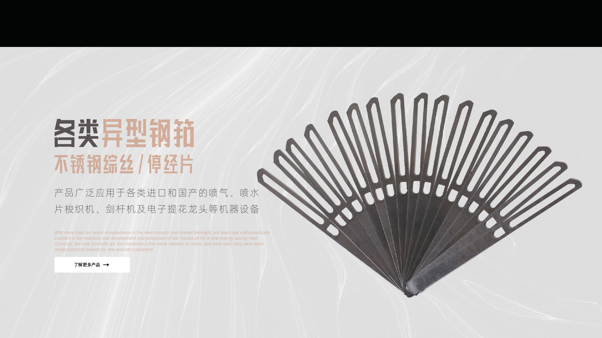 憑借十多年鋼筘行業(yè)經(jīng)驗(yàn)及對市場的前瞻性,我們團(tuán)隊(duì)滿懷熱情的投入到豐田JAT810新型節(jié)能鋼筘的研發(fā)和生產(chǎn)當(dāng)中,目前新產(chǎn)品在國內(nèi)同行業(yè)中先行上市銷售,一經(jīng)銷售就得到了新老客戶的認(rèn)可和好評(píng)!